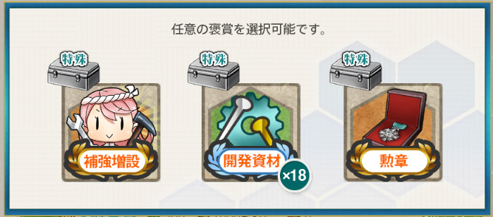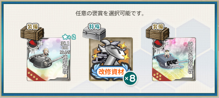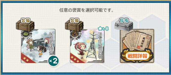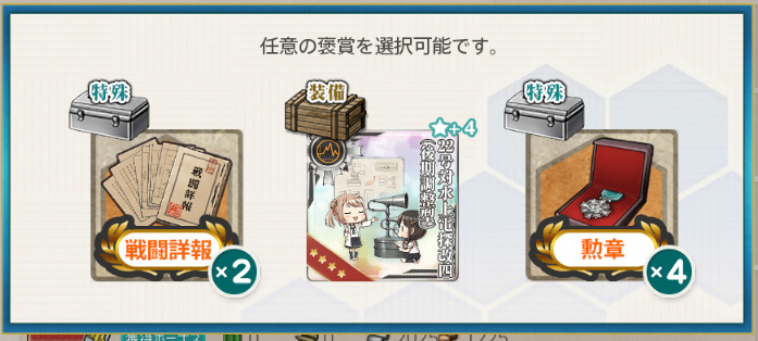 戦闘詳報×2or 22号対水上電探改四(後期調整型)☆4 or 勲章×4