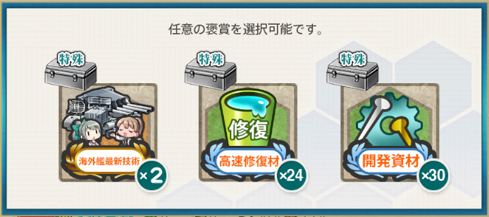 海外艦最新技術×2 or バケツ×24 or 釘×30