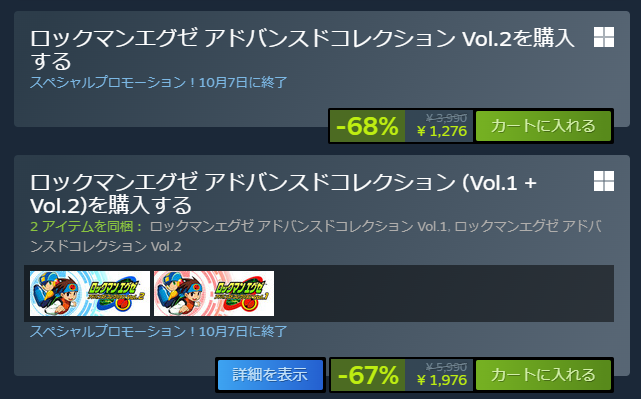 エグゼ1~6の計10作品が1,976円で購入出来ちゃいます。
