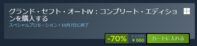 GTA5で目が肥えているユーザーには今更GTA4はしんどいのかも知れませんが、注目するべきはそのお値段。たった660円でGTAシリーズが購入できるのはヤバいです。私も買いたいなと思って価格監視リストに入れています。