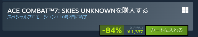 エスコンはどちらかと言えばPCゲームではなくプレイステーション系のゲームのように認識していますが、最近はPCゲー界隈でも人気だそう。私はずっと興味があるのですがこれまでシリーズ未経験。この機会に買ってしまおうかしら。価格も90%オフでめっちゃ安い。