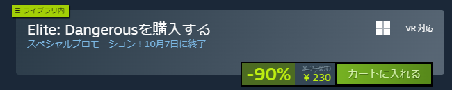 Elite Dangerous、通称エリデンは数年前に買ってめっちゃハマったゲームですが、今回信じられないくらい安くなっていたのでご紹介します。