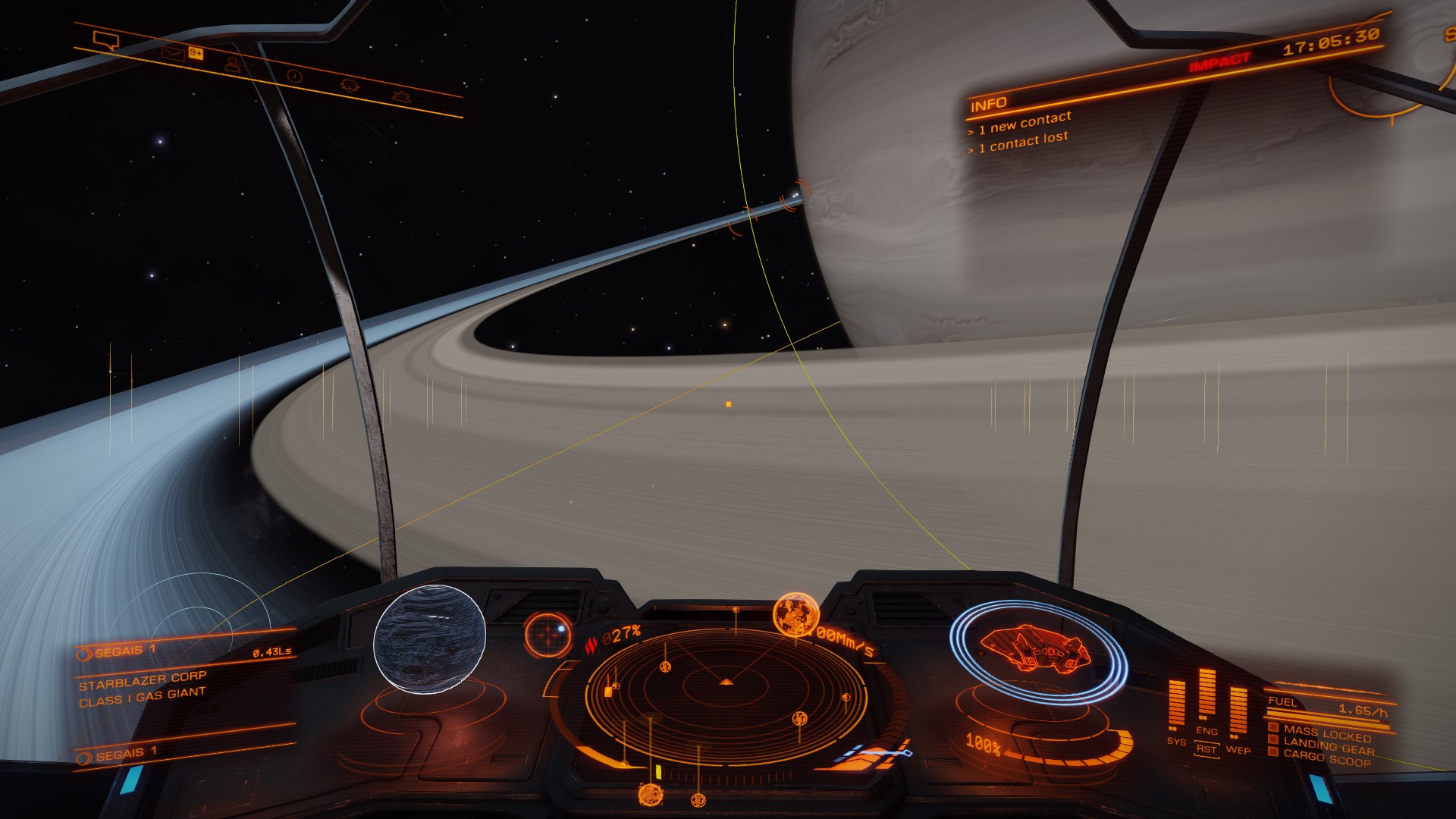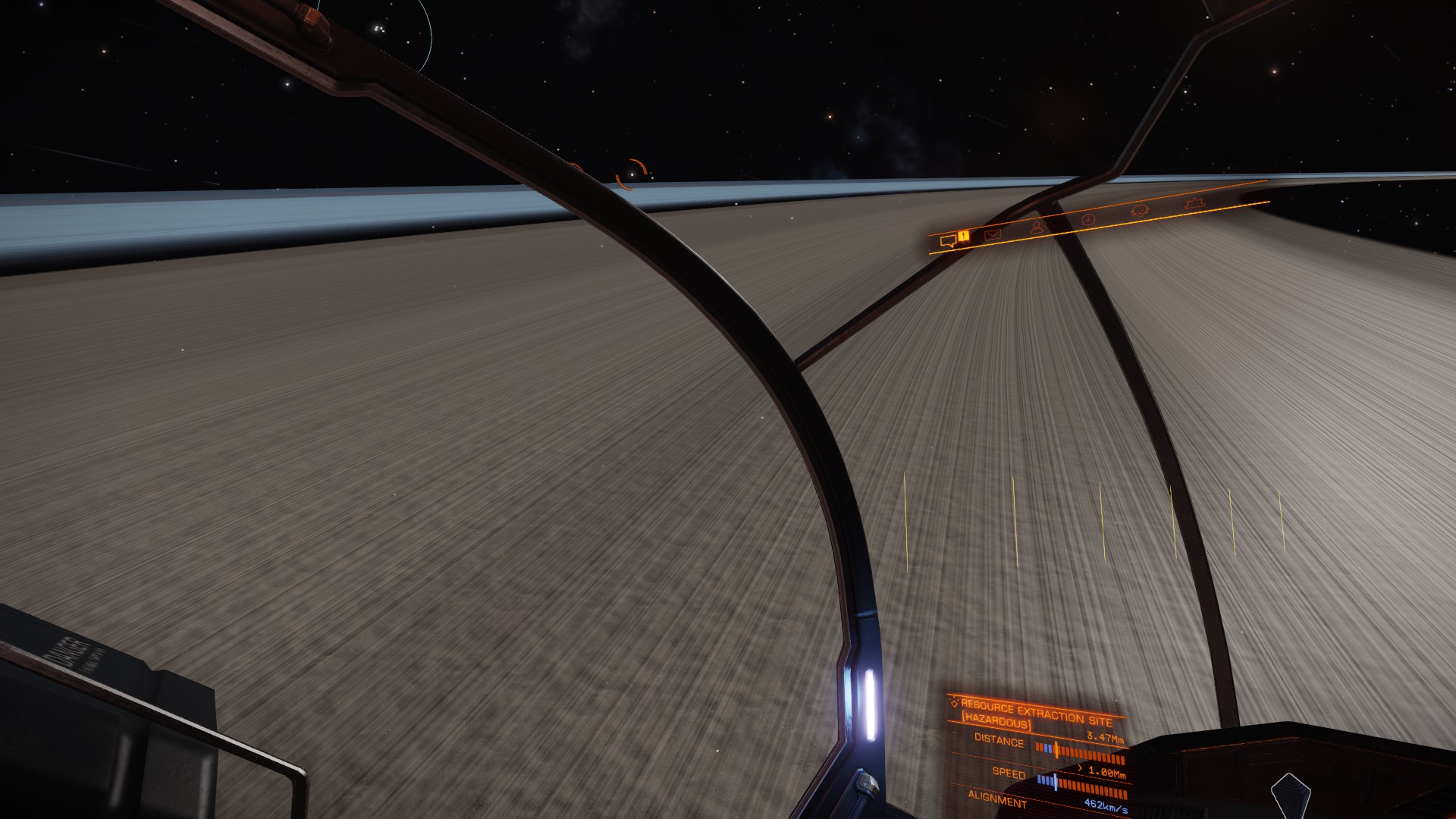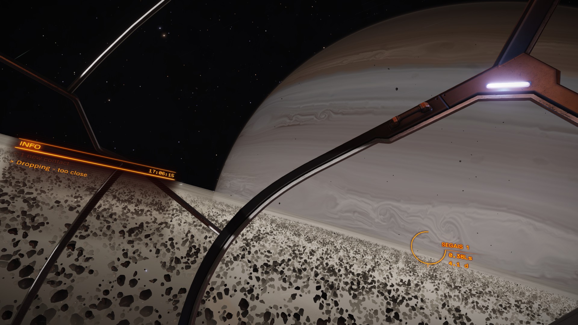 上の画像は名もなきガス状惑星の輪にアプローチする実際のゲーム画面です。