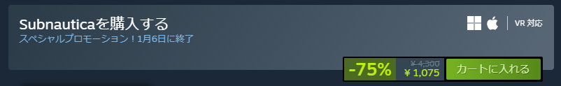 75%オフ1,075円まで値下がりしました。おそらく過去最安値!