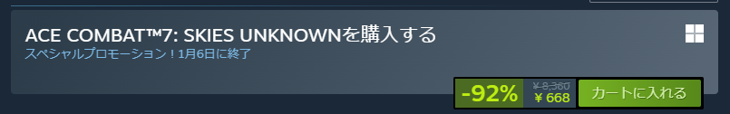 エスコンはどちらかと言えばPCゲームではなくプレイステーション系のゲームのように認識していますが、最近はPCゲー界隈でも人気だそう。私はずっと興味があるのですがこれまでシリーズ未経験。この機会に買ってしまおうかしら。価格も90%オフでめっちゃ安い。