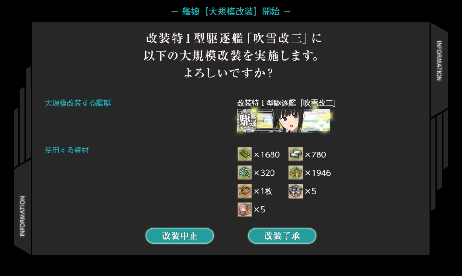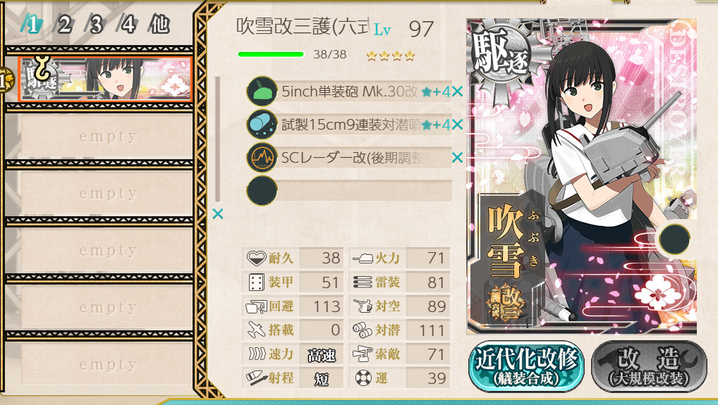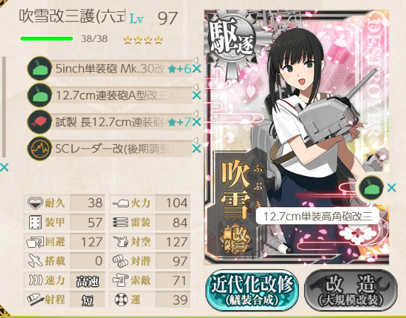 前回、吹雪改二を改三に改装したところまでご紹介しました。