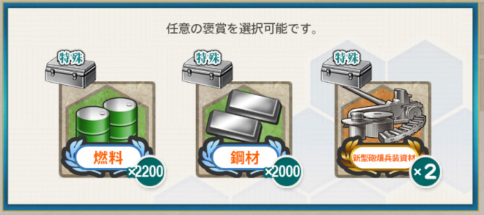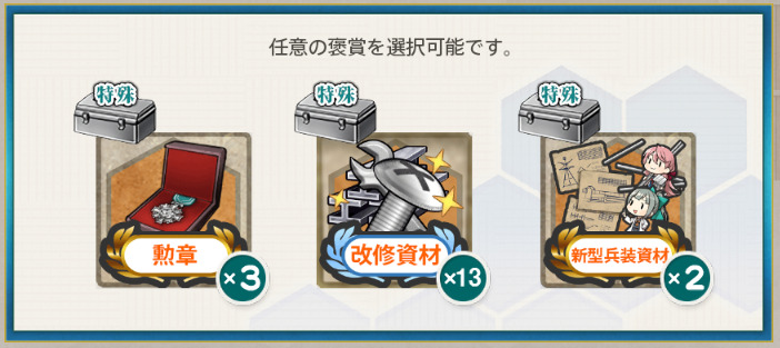 釘×15 or 新型航空兵装資材×2 or 勲章×2