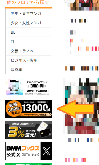 ……ちなみになのですが、この13,000ptキャンペーンは、とあるページ限定の増量キャンペーンです。とあるページがどこかと言うと、DMMの闇の部分、FA〇ZAの電子書籍ページです。