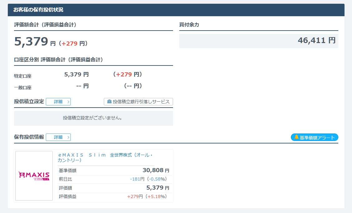 ということで投資信託を5,000円ほど買いました。