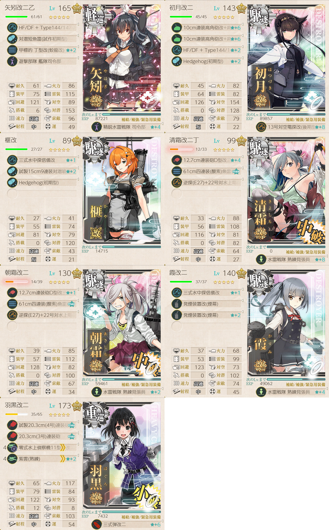| レア艦 | 甲S | 甲A | 乙S | 乙A | 丙S | 丙A | 丁S | 丁A |
