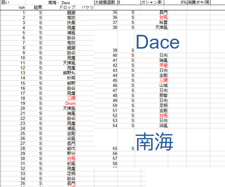 E4甲乙丙丁 Dace+南海 +その他レア艦 ドロップ率