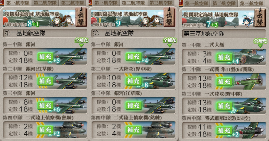 基地航空隊はこちら。喪失×2、劣勢×1で調整しています。