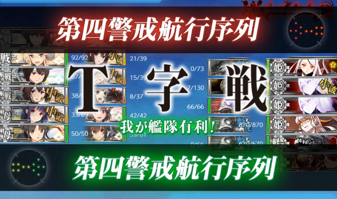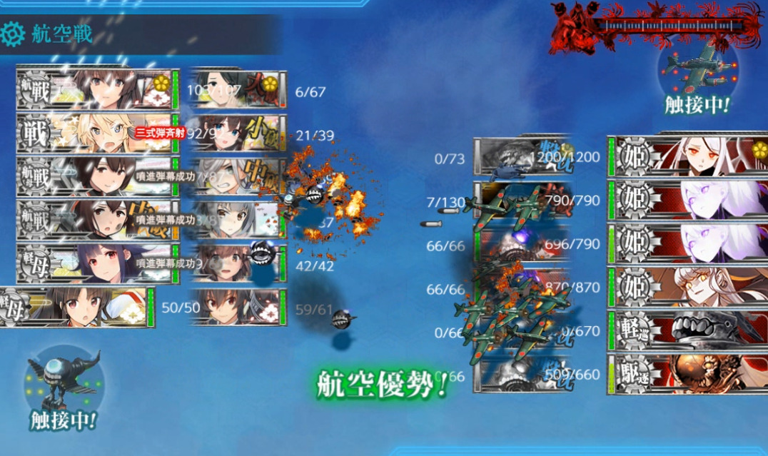 開幕航空戦と決戦支援終了。ナが3匹消えて残り1匹に。しかもT有利!