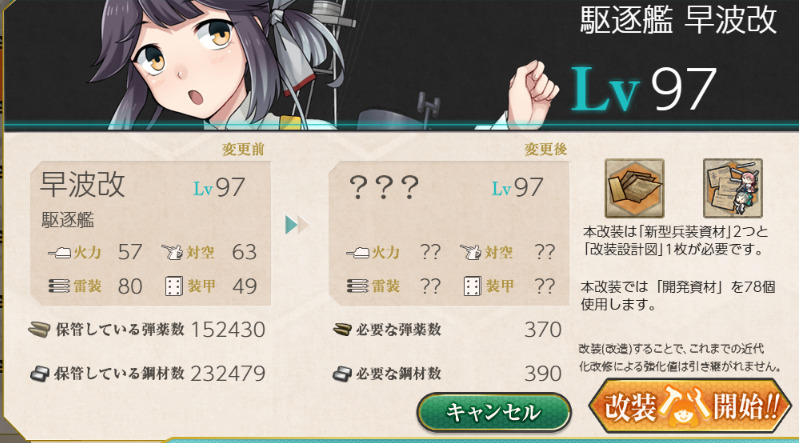 本日のメンテナンスで早波改二が実装されました。めでたい。